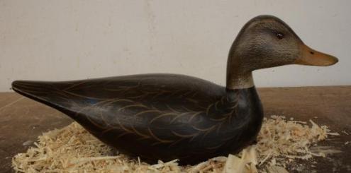 Antique style wooden blackduck, hand-carved from Maine white pine, hollowed,and painted with acrylic paints, weighted with sheet lead, and a leather strap. Antiqued and distressed to add to the classic looks. Sold |