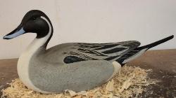 Pintail drake, hand-carved, wood duck decoy, painted with acrylics. Life size and made as a hunting decoy with a bottom weight and leather anchor rode attachment loop. $400 plus shipping |