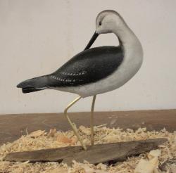 Yellow Legs carved from wood and painted acrylics, brass legs on a driftwood base, 10 1/2 inches tall. $110 plus shipping |